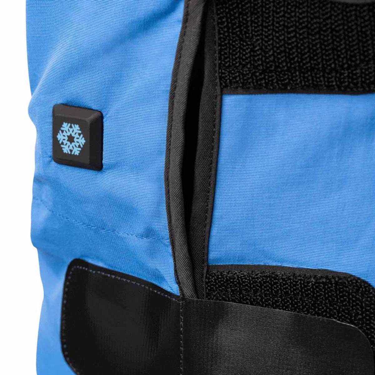 Turning the vest on starts the pump system. As the cooled water comes near your body, it wicks heat away from you and re-cools it as it passes the ice pack in the reservoir. The BPA-free polyethylene (PE) reservoir assists in maintaining a cooler temperature to optimize the time that the ice pack stays cool. Simply replace the ice packs as needed by keeping them in the freezer, ready to swap.