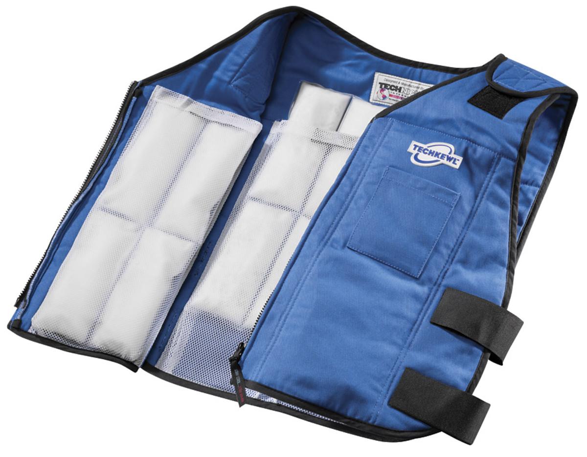 TechKewl Phase Change Cooling: This advanced technology uses specially designed inserts containing our Phase Change Material (PCM) which releases long-lasting, temperature-specific (58 degrees F, 14 degrees C), cooling relief designed to fit inside our garments. Typical applications include industrial safety, construction, emergency services, military, outdoor recreation, equine, mascots and therapeutic.