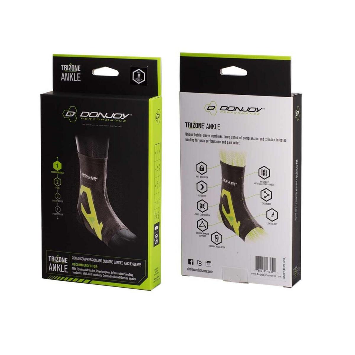 Our Trizone Ankle Sleeve is part of the DonJoy Performance brand. The Trizone line offers a mid-level bracing support for athletes. Trizone technology combines compression, warmth, and support all-together. The material is low-profile which allows you to wear it comfortably for training, games, and competition while maintaining peak performance. Stand out on the court or in the field with protection from this hybrid ankle support.