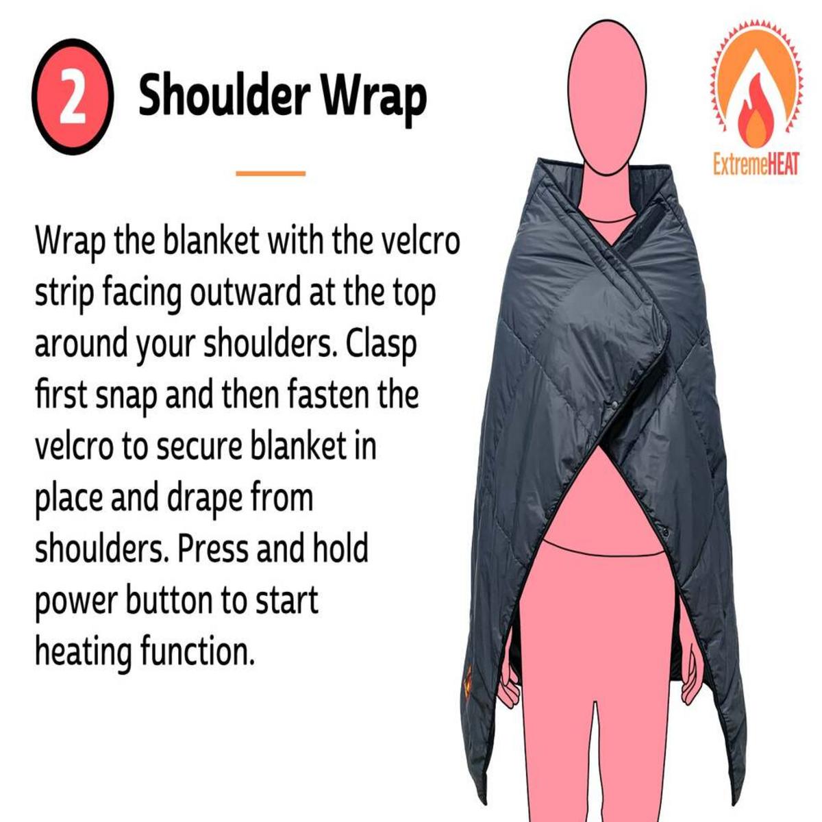 Take the chill out of your day with the ExtremeHEAT Heated Blanket-the ultimate solution for staying warm on the go. Whether you're camping under the stars, traveling in your van, or simply sitting at your desk, this totally portable heated blanket adapts to your needs without relying on traditional AC power.