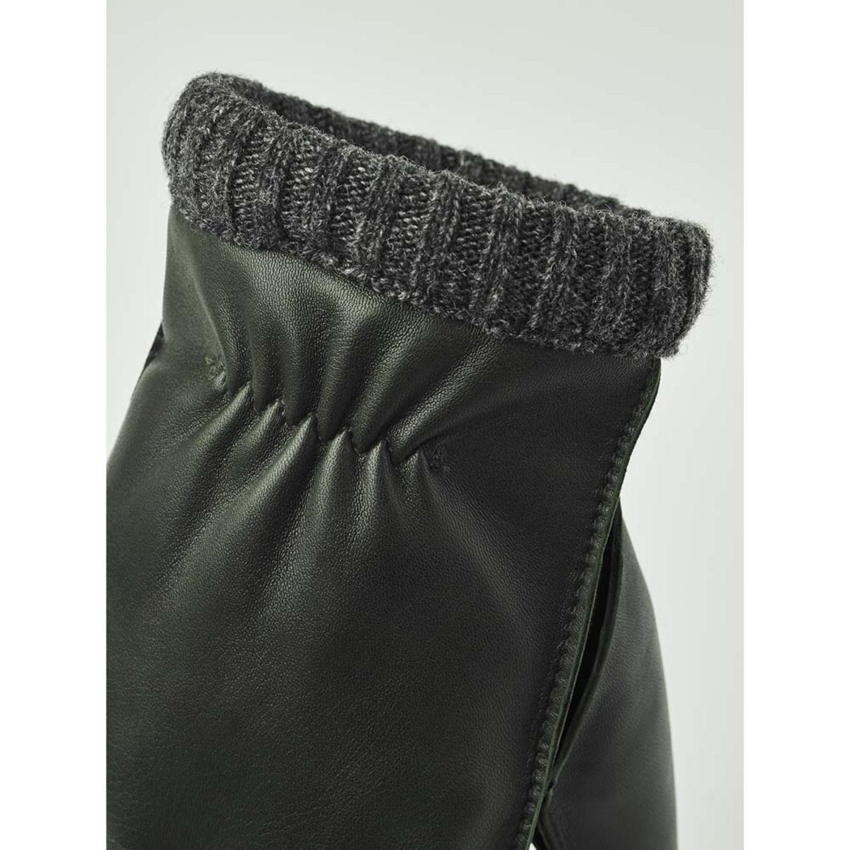Stylish leather fashion glove with a light, warming synthetic liner. Sewn in soft lamb nappa with suppleness and a fine sheen. The cut is medium-high, with a ribbed cuff that contrasts nicely against the leather. A versatile accessory for chilly autumn and winter days.