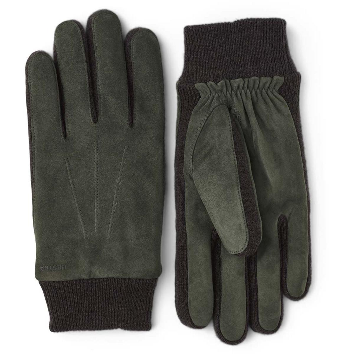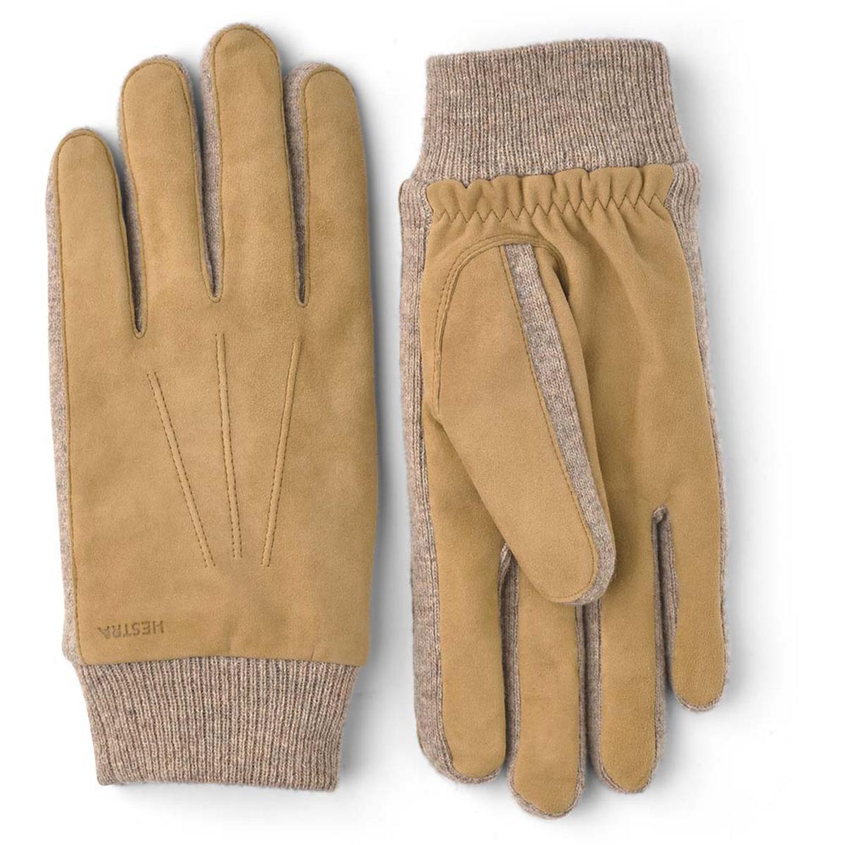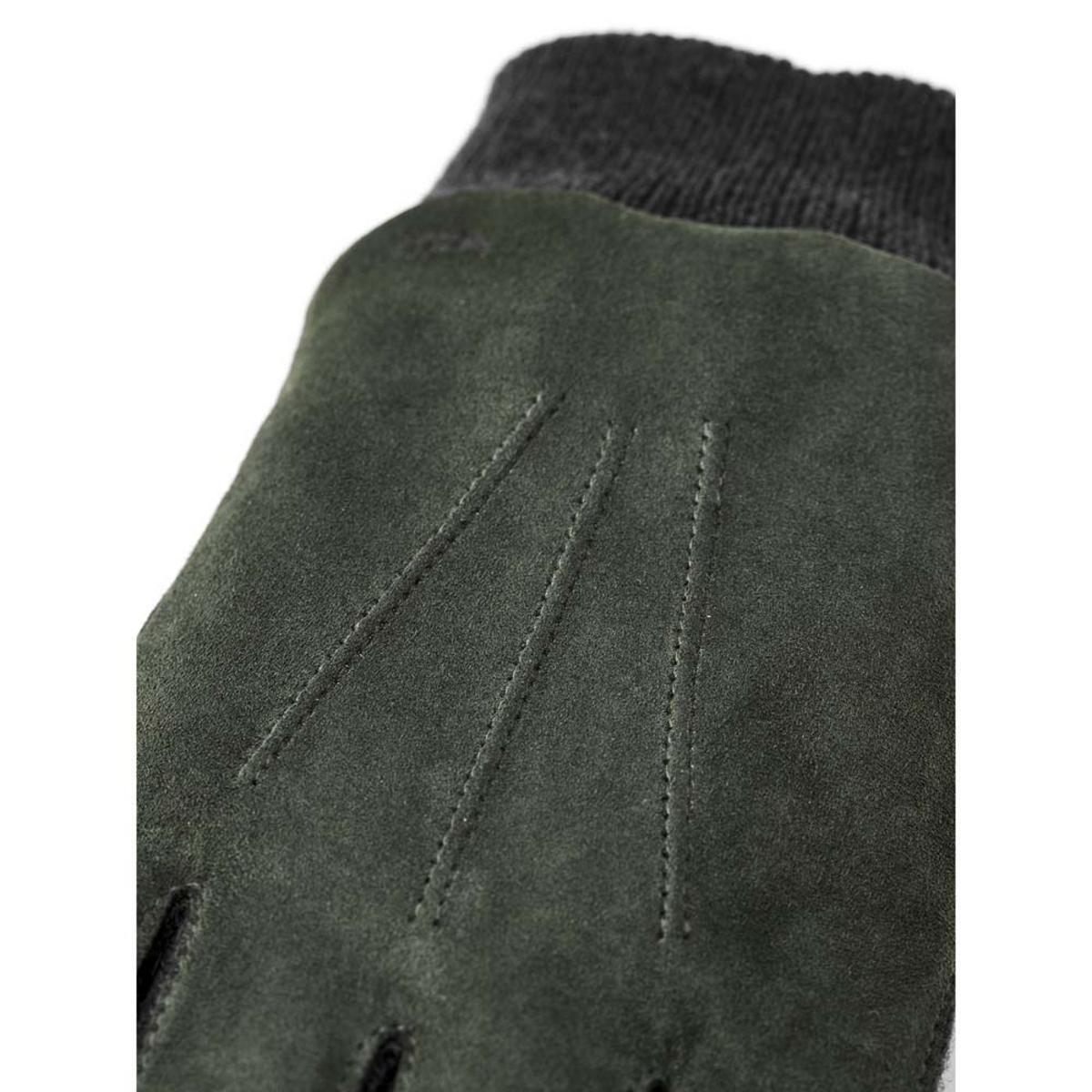 A sporty, comfortable glove that combines wool and the softest lambskin suede. The Geoffrey glove is a stylish, warming men's glove for autumn and milder winter days. A side gusset and details are in rib-knitted wool jersey, while the backhand and palm are in Italian lambskin suede. Half pique seams around the fingers make for a great fit and a ribbed cuff encloses the wrist.
