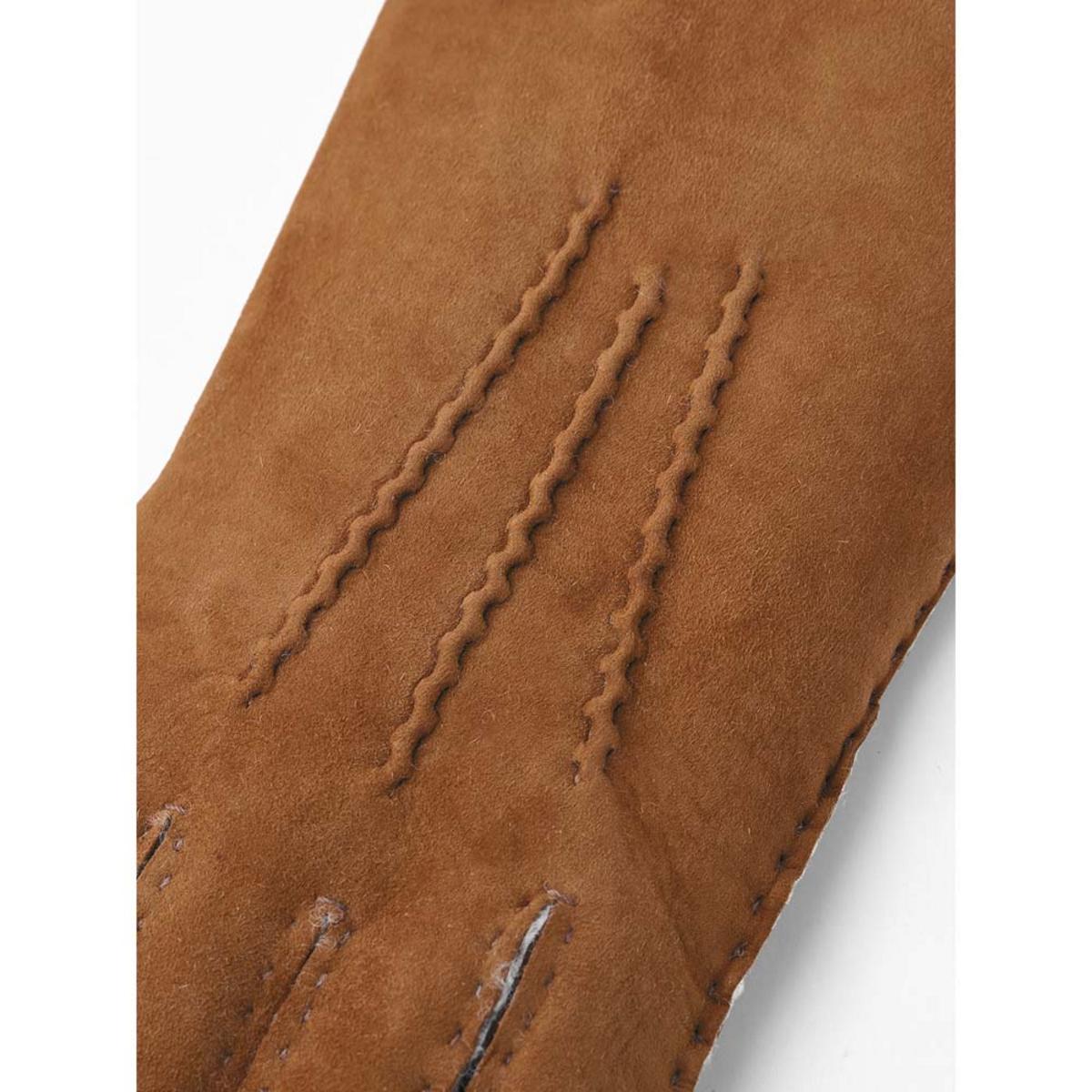 A light, warm, glove in the softest lambskin suede, this timeless men's design is cut and sewn by hand in Hestra's glove cutting workshop in Hungary. The glove has points on the palm and the cuff can be folded down to show more or less of the fluffy side. High-quality materials and skilled craftsmanship produce a glove with an incredible fit and suppleness, perfectly warming for colder days in winter.