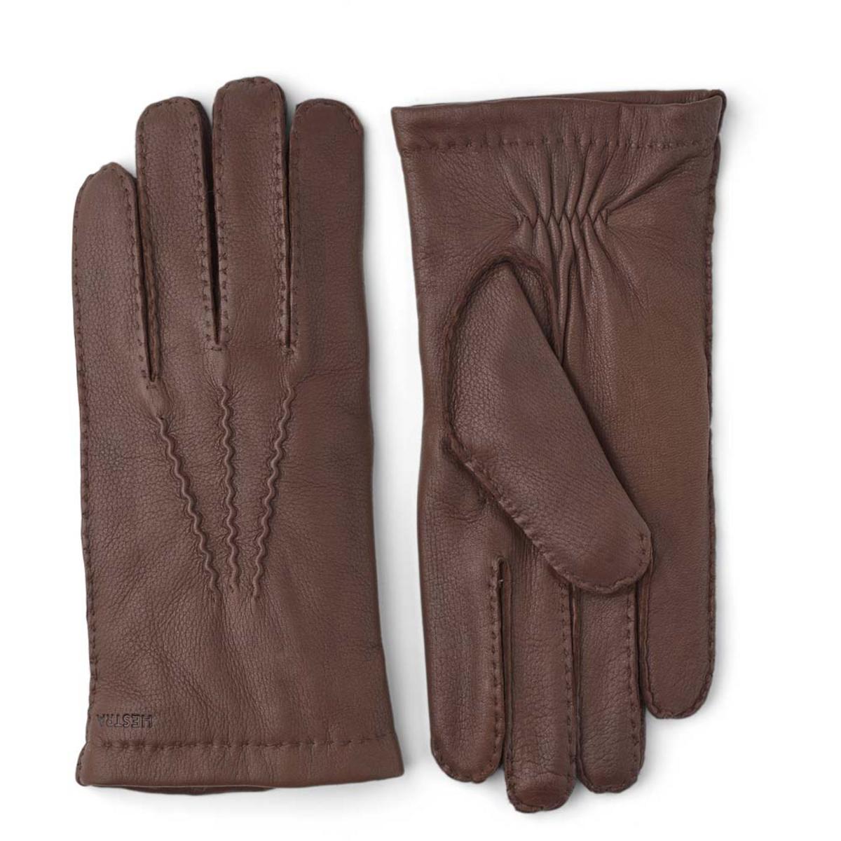 This handsewn deerskin glove has a soft, knitted wool lining. A popular men's design with a timeless cut in gorgeous materials, it's perfectly warming for chilly winter walks in the city or out in the great outdoors. Sewn by hand in carefully selected quality deerskin, a soft, supple leather that provides good insulation and adds a rustic look. The cut is close-fitting with a soft elastic cuff on the inside of the wrist. External seams and decorative stitching on the backhand add a subtle sense of style.