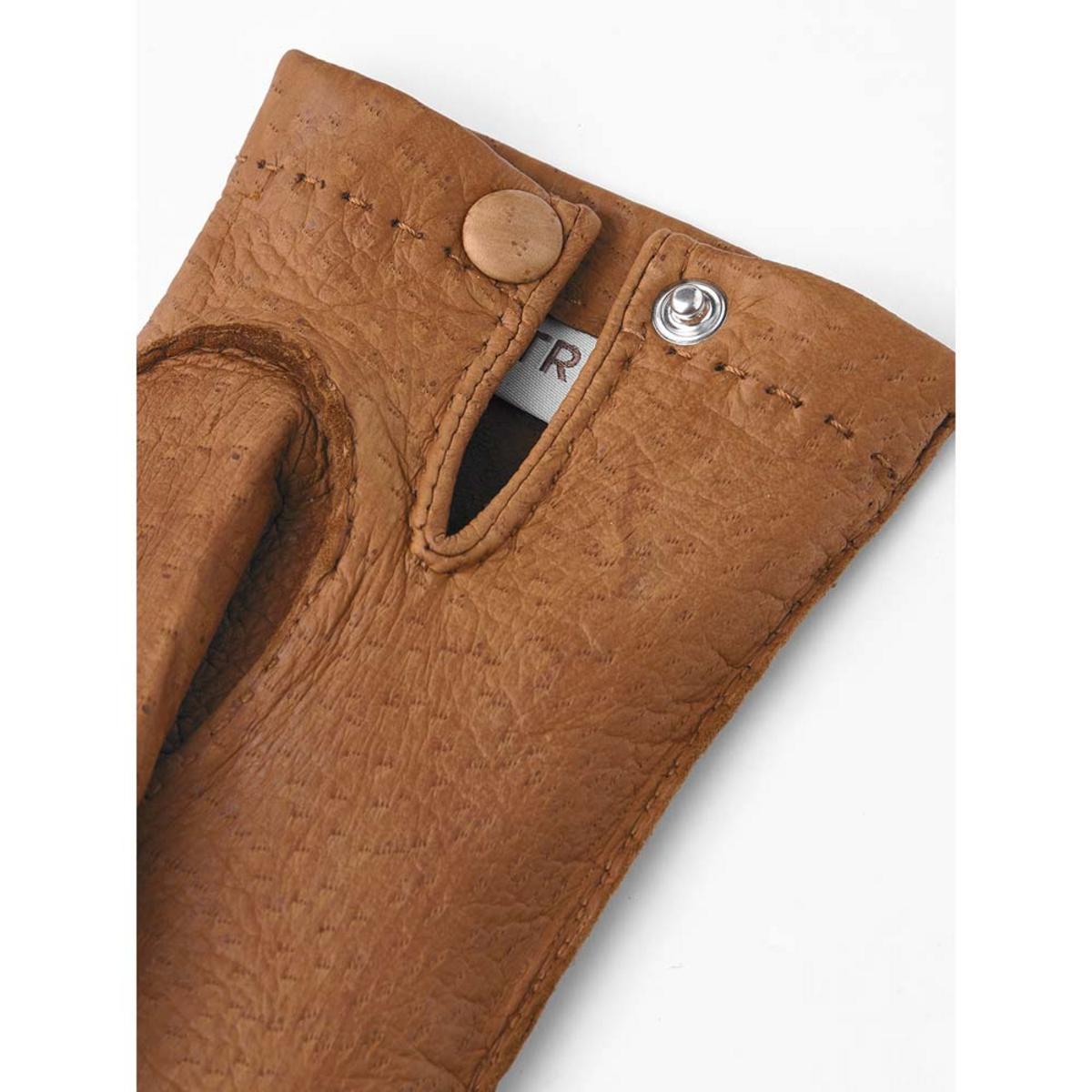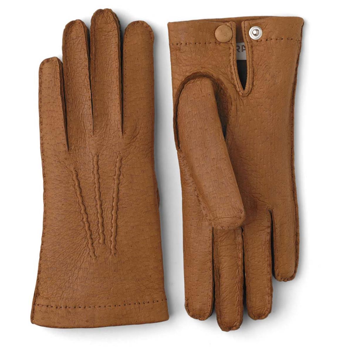 A timeless men's glove in peccary, considered to be the most exclusive glove material in the world. Peccary is a South American wild boar leather with unique properties. It is strong, soft, warming and offers unsurpassed elasticity which means it shapes itself to the hand, even after long-term use. The glove is cut by hand from a single hide by Hestra's skilled glove cutters in Hungary. Their craftsmanship produces gloves of superb fit and feel, with quality reflected down to the tiniest stitch. The cut of this glove is short with a slit at the wrist and a covered press stud for a perfect fit. This design is unlined, making it ideal for mild temperatures in spring and early autumn.