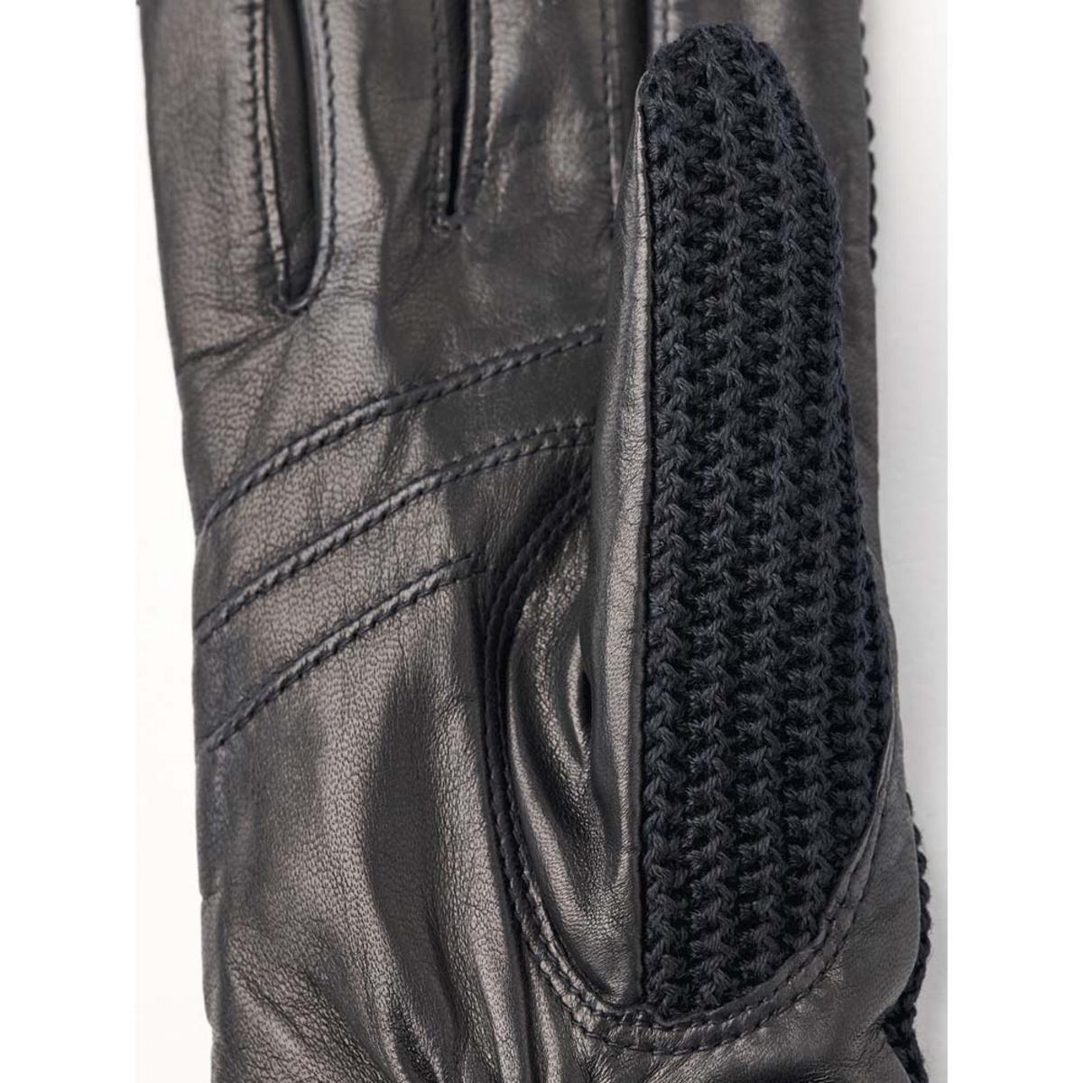 An elegant leather glove with cotton crochet on the backhand. Sewn in exclusive Italian lamb nappa, a soft, supple leather with high sheen. A thin, knitted wool lining makes this glove a perfect choice for chilly autumn and winter days. The cut is close-fitting with a slit at the opening and a soft elastic cuff on the inside of the wrist for a perfect fit. Quality materials and stitching make this a timeless fashion accessory for everyday use and special occasions.