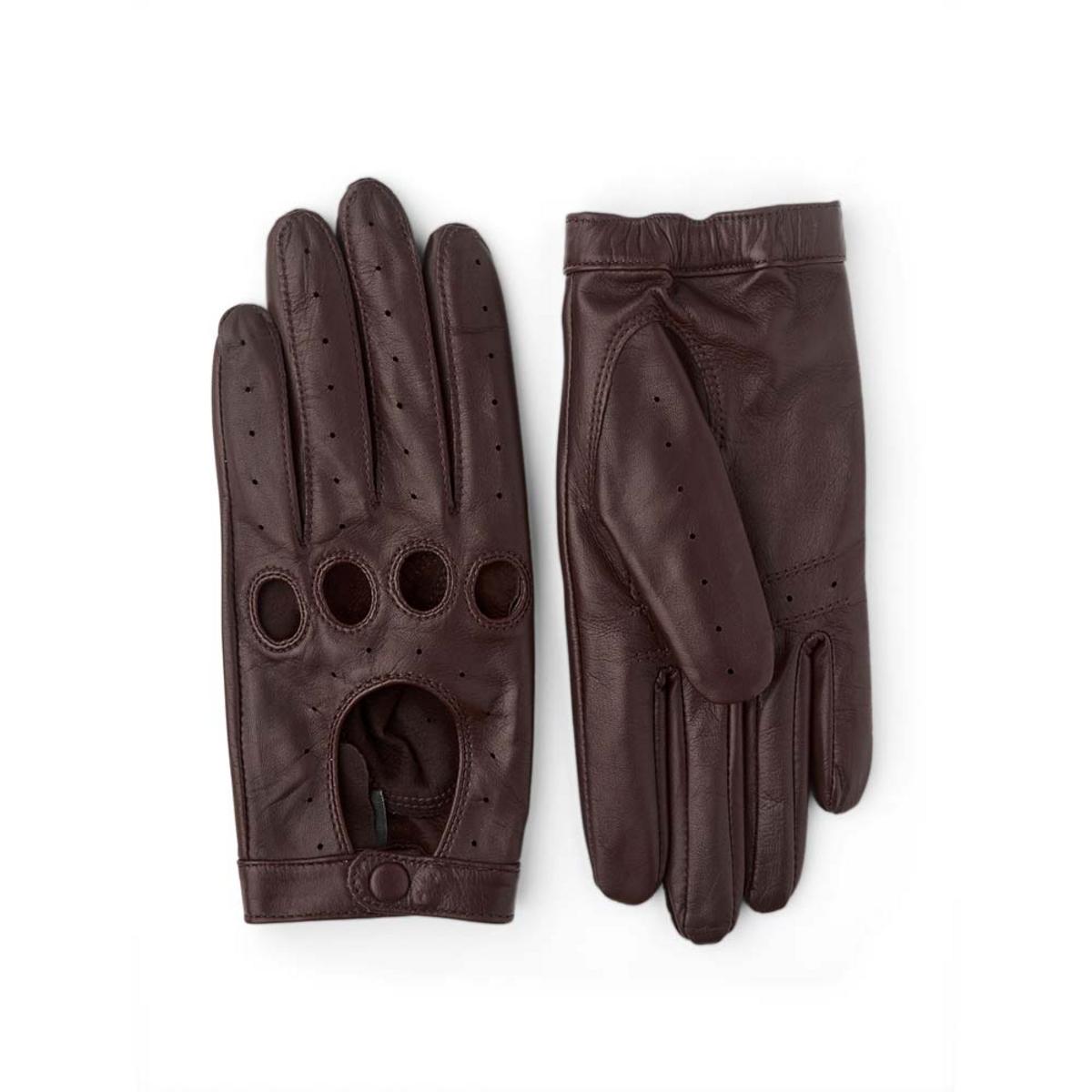 Retro-inspired driving glove in soft Italian lamb nappa. A classic model with openings for the knuckles and backhand. Ventilation holes let air in along the fingers, and a strap with a press stud tightens over the wrist. A beautiful fashion accessory that lifts any style, and is perfect for the spring and milder autumn days.