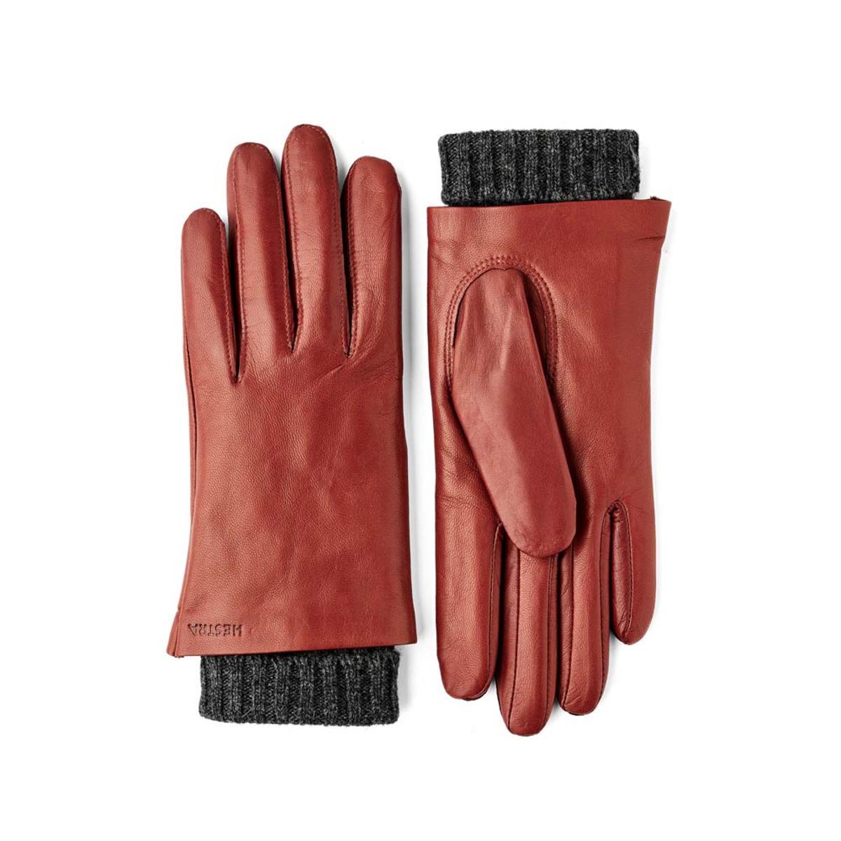 A stylish, minimalist leather glove with a soft, knitted wool lining. Sewn in exclusive Italian lamb nappa, a soft, supple leather with a beautiful sheen. Comfortably warming in spring and autumn and also ideal on milder winter days. The cut is close to the hand with half pique seams around the fingers. A long, knitted cuff is gently warming around the wrist, an attractive contrast against the leather. Quality craftsmanship and materials produce a timeless fashion accessory for everyday use and special occasions. The Megan glove comes in a range of colours from classic black to beautiful seasonal shades.