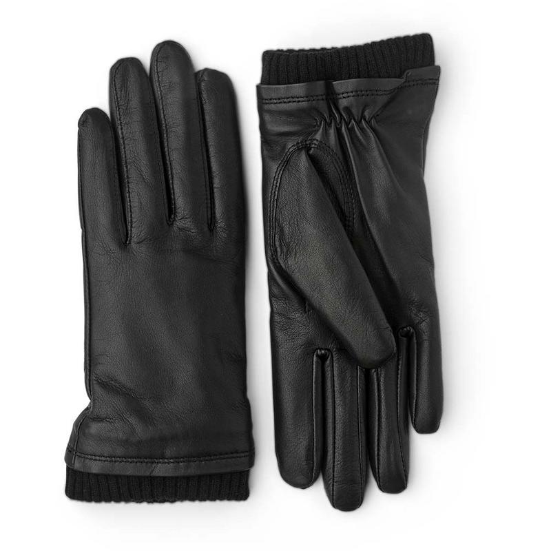 Smooth women's leather glove with ribbed cuff. Sewn in soft, stretchy lamb nappa with a close fit and a little elastic on the inner wrist. A soft knitted wool blend lining provides light warmth on chilly autumn and winter days.