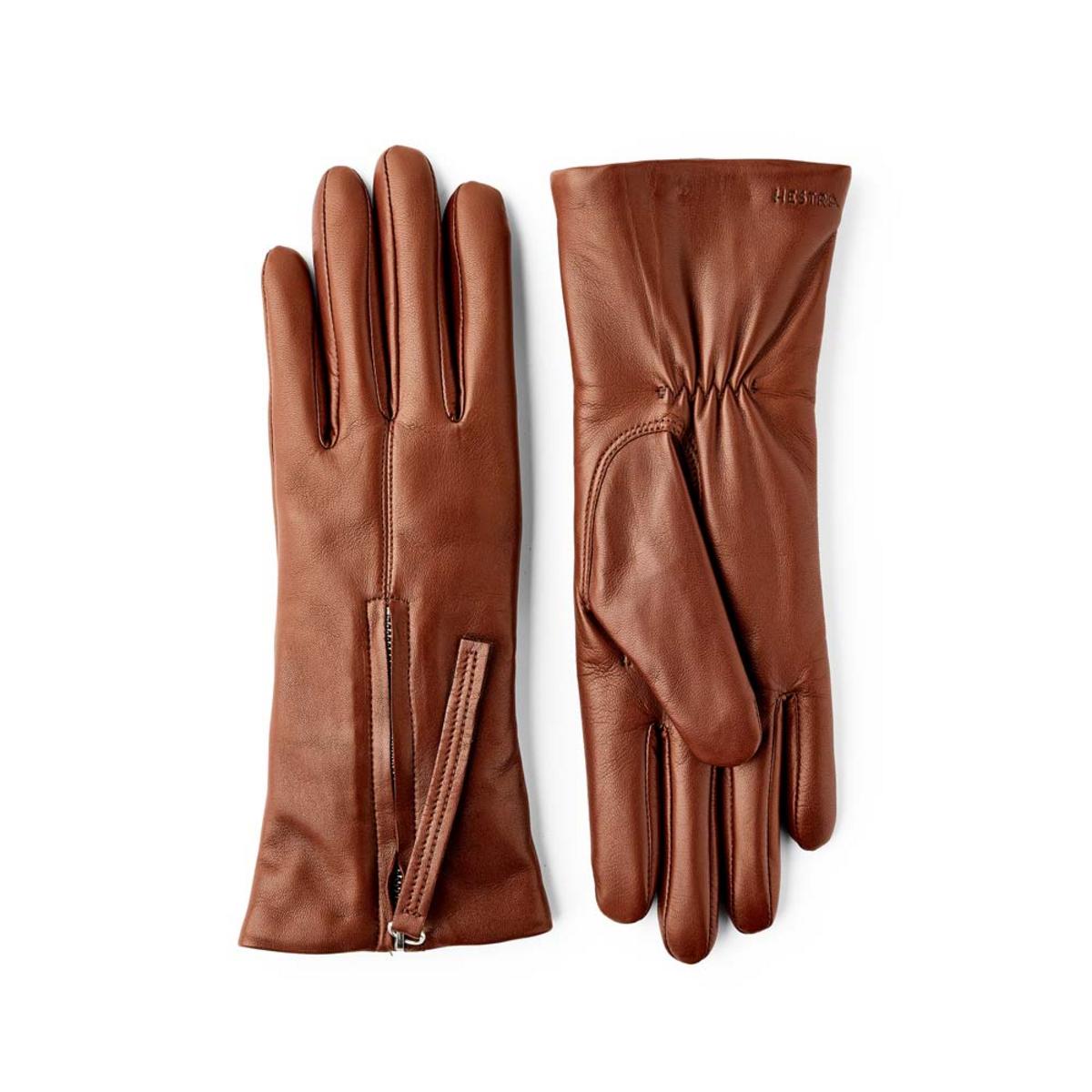 Timeless style and finely crafted details are the basic concept behind this elegant leather women's glove. Vera is made from exclusive Italian lamb nappa, with fantastic suppleness and sheen. A thinly knitted wool/polyamide lining provides warmth in spring and autumn, and on milder winter days. The fit is close to the hand, with a little elastic on the inside wrist. A zip on the backhand adds distinctive style, and makes it easier to get the glove on and off. High quality stitching and materials create a beautiful fashion accessory that lifts any outfit, for everyday use and special occasions.