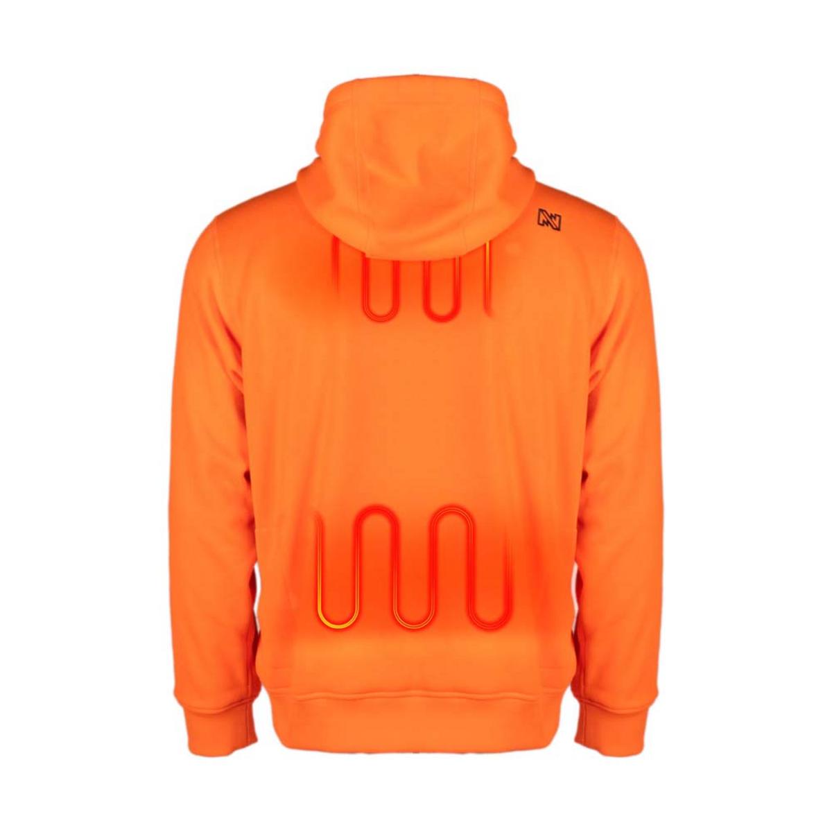 Designed for outdoor enthusiasts and hunters, the Pullover Heated Hoodie is a heated men's jacket that blends Fieldsheer's Mobile Warming Technology with an integrated heating system powered by our proprietary Powersheer XL Plus rechargeable Lithium-Ion Battery. Controling your comfort level is made easy with our proprietary MW Connect app, which is easily downloaded on the App Store or Google Play Store. The distinctive Blaze Orange color offers high visibility, which is indistinguishable by game but offers protection from other woodsmen. It also protects construction workers on job sites or roadways where high-vis clothing is an essential part of PPE.