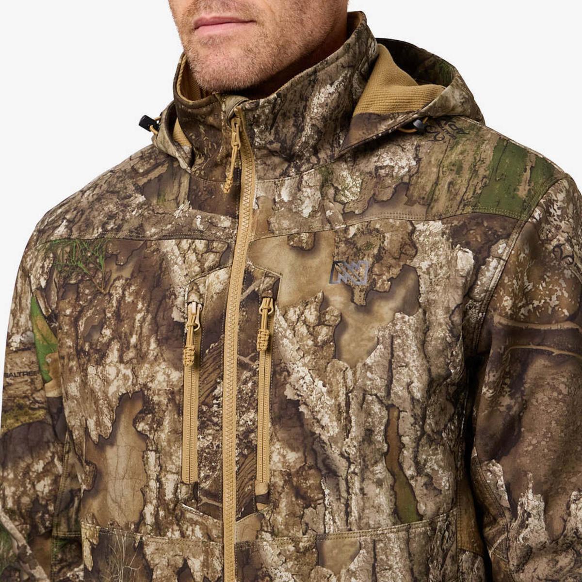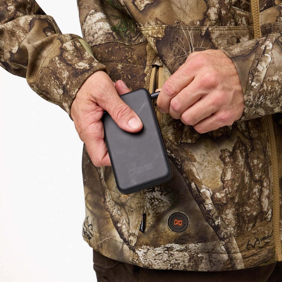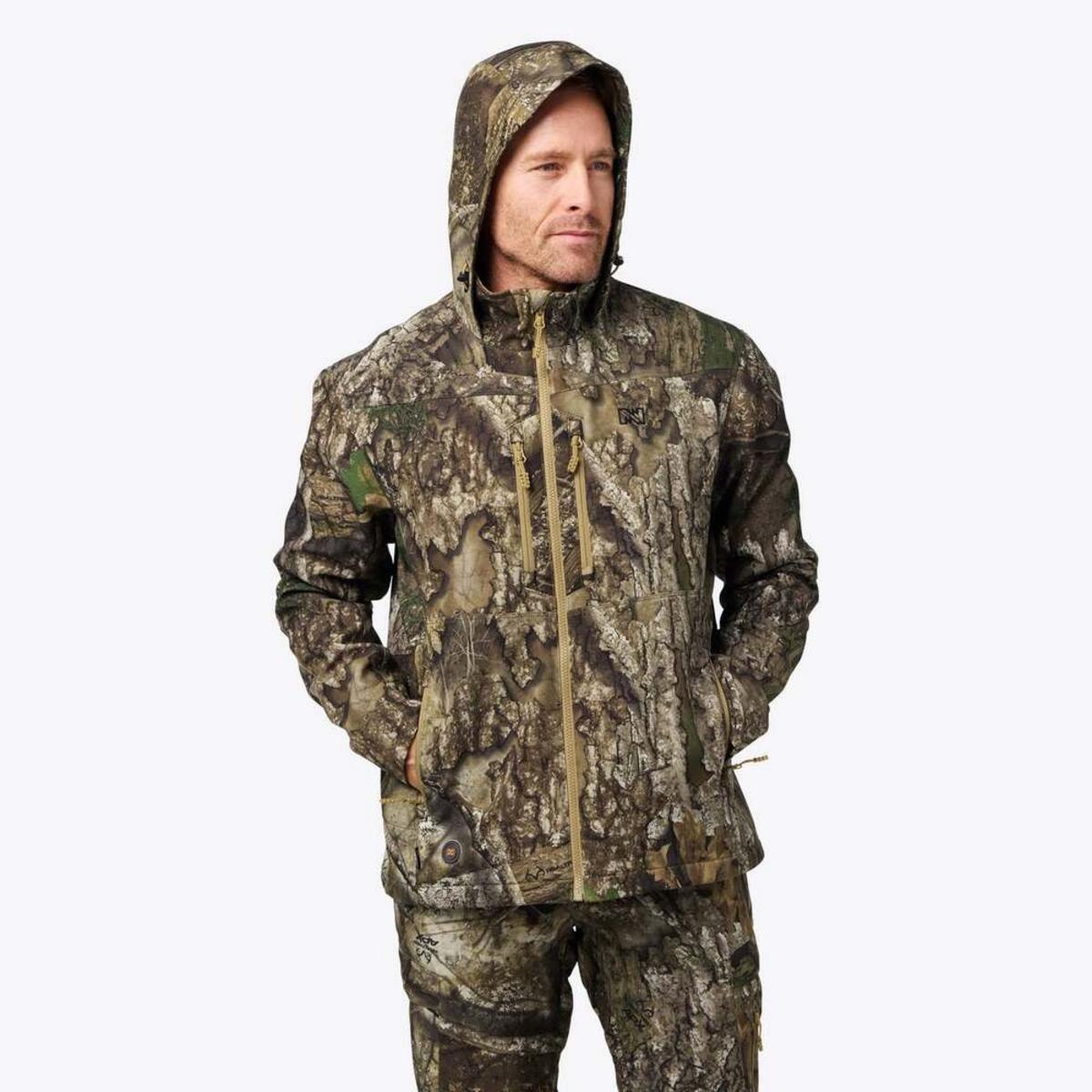 Built for the hunt, designed for extreme conditions. The APX Heated Jacket Features a Realtree APX camo pattern and a silent, 4-way stretch shell with DWR finish to stay dry and undetected in the field. Six heat zones deliver targeted warmth, while a breathable grid fleece lining, high collar with neck garage, and YKK zippered hood keep you covered when the weather turns. With zippered chest and hand pockets and adjustable sleeve cuffs, this jacket is engineered for long days in the wild.