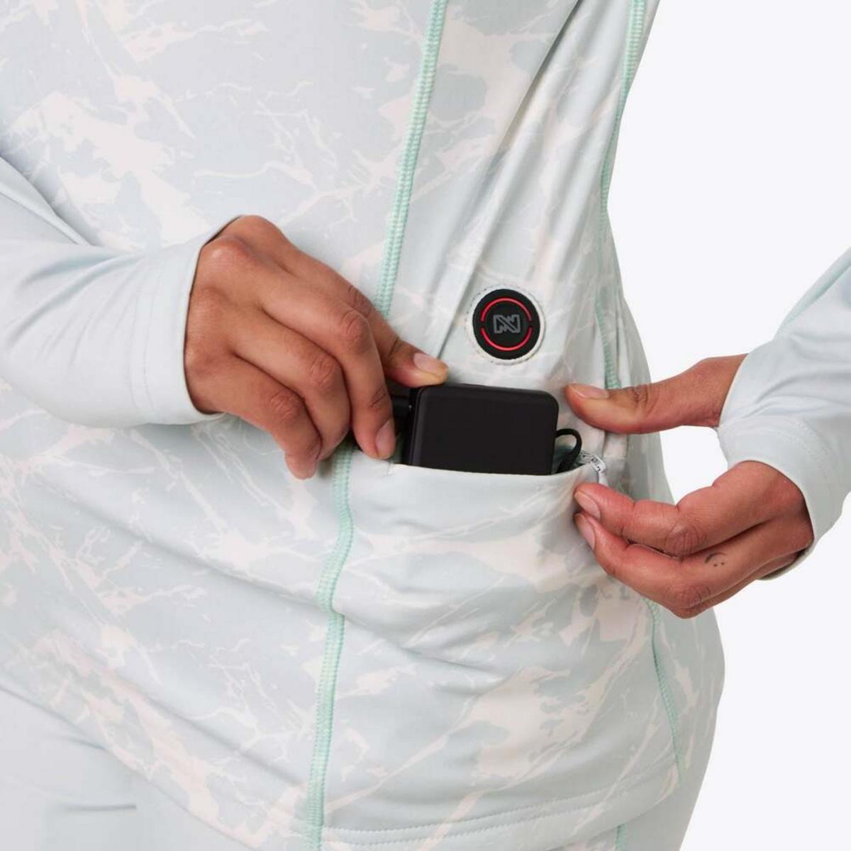Stylish warmth from base layer to outer layer. The Proton Heated Baselayer Shirt features a midweight printed knit design with a soft lining, flat stitching, and a 1/4 zip for easy ventilation. In-seam thumbholes add a secure fit, while 3 heat zones deliver consistent core warmth. Whether layered under your winter gear or worn on its own, it’s the perfect blend of comfort and performance.