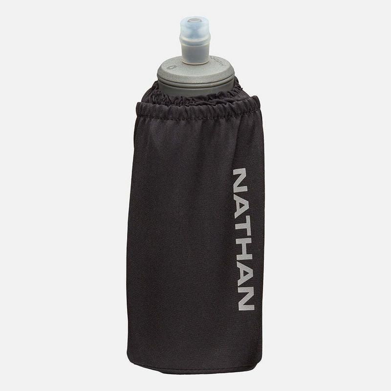 The Pinnacle Soft Flask Insulated 18oz Handheld features NATHAN advanced ExoDraw soft flask technology in an updated carrier and grip-free strap for unmatched comfort. It boasts an expandable pocket for keys and essentials, ideal for marathons, trail runs, hikes, climbs, and more. With an insulated flask, keep fluids cooler, longer.