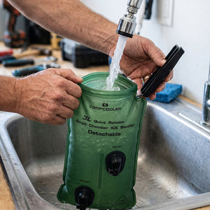 CompCooler 3L Detachable Bladder with quick release fitting, user may fill in water from top roll opening to freeze in the fridge or fill in ICE water for quick operation.
