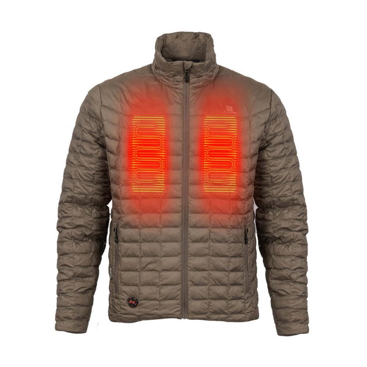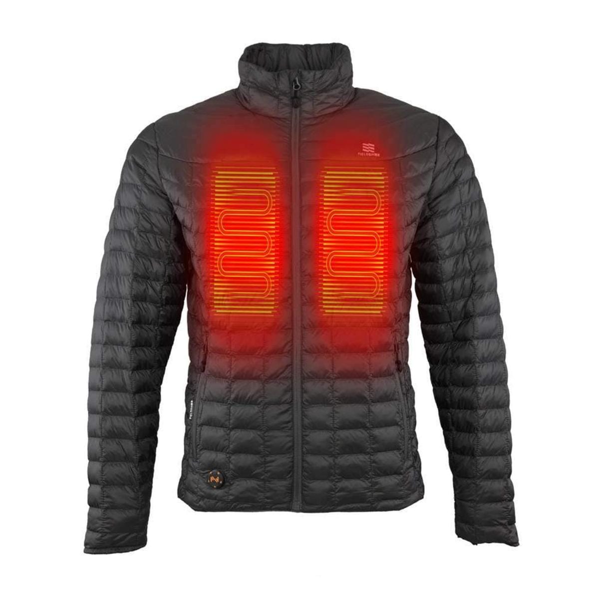 The Fieldsheer powered by Mobile Warming heating technology Backcountry Heated Jacket made with Primaloft synthetic down comes in 2 colors and offers a low-profile 7.4-volt battery. With Waterpell technology, water bounces off the garment. Primaloft is a down alternative made from recycled materials into ultra-fine insulative fibers. The Backcountry is stylish enough to wear on its own during day-to-day use, but light and amply compressible to also wear as a base layer under your favorite rain or snow Heated Jacket. The Backcountry 7.4-volt heating system can provide heating temperatures ranging from 135°F on high to 90°F on low. On high, expect up to 2+ hours of heat, and on low it can heat up to 10 hours! Temperature control is simple with 2 ways to adjust the heat. First, the built-in waterproof touch control button. With a simple button push, it lets you choose from 4 instant heat settings with multi-colored LED indicator. Plus, we've incorporated Bluetooth control with our proprietary, free to download via App Store or Google Play Store, MW Connect app. Through the free MW Connect app, you can quickly toggle through all connected Fieldsheer powered by Mobile Warming technology garments and adjust individual heat levels to your liking. MW Connect app allows you to get real-time updates on battery levels and update your garments when new firmware becomes available. The Backcountry comes as a complete package with a 7.4-volt battery, charger, and stow bag. The Backcountry provides instant heat when the weather turns cold, keeping you outdoors and enjoying your favorite activity.