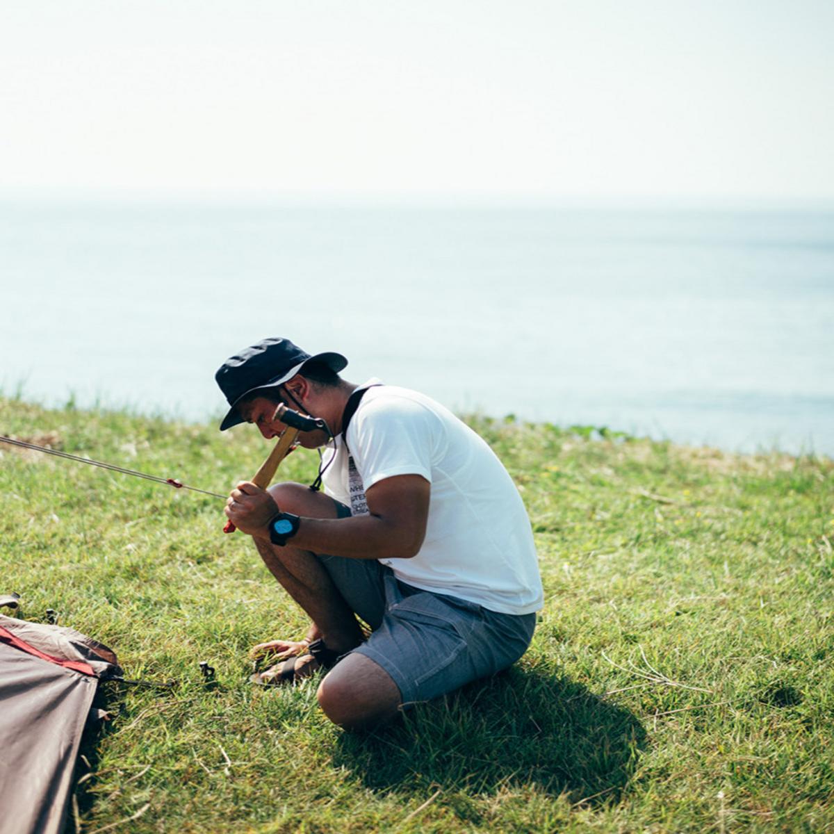 Designed in Japan, the Copper Head Peg Hammer is made of forged steel using a historic manufacturing process. Use it to drive and remove Solid Stakes into the ground. The copper head will decrease shock while hammering and provides an even blow. The Copper Head Peg Hammer also features a solid wood handle, a strap for safe hammering, and a pick and loop for easy stake removal.