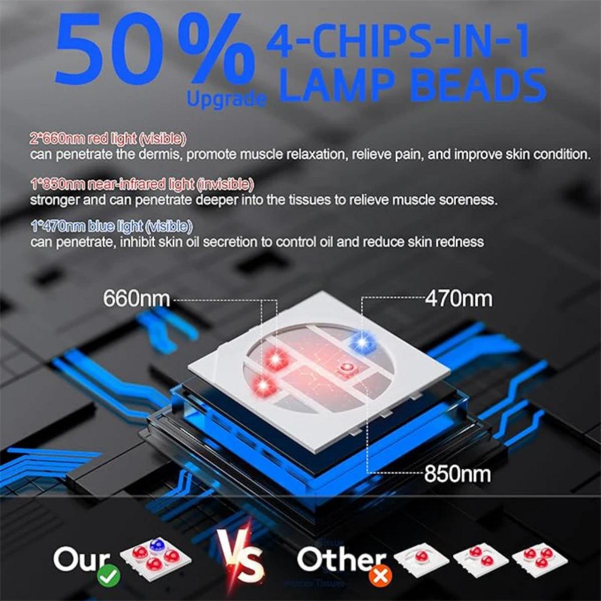 More Powerful: Red light therapy has been proven to be effective in relieving pain and promoting wound healing. Our upgraded 4-chip-in-1 LED red light therapy mat features more intense light. Let you have a better health experience. The red light pad also adds a 470nm blue light wavelength, which reduces skin redness