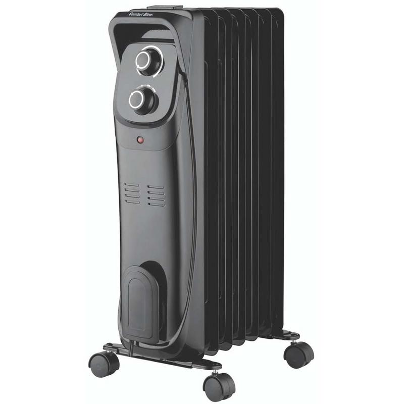 The Comfort Glow Oil-Filled Radiator Heater offers an efficient, and portable heating solution for your indoor spaces. Designed with a sleek, modern black cabinet, this heater not only adds a touch of style but also delivers dependable warmth to areas up to 400 sq ft. With 5,120 BTUs and a choice of three heat settings-600W, 900W, and 1500W-you can easily customize warmth to match your comfort needs. The adjustable thermostat provides precise control, allowing you to maintain a cozy environment all winter long.